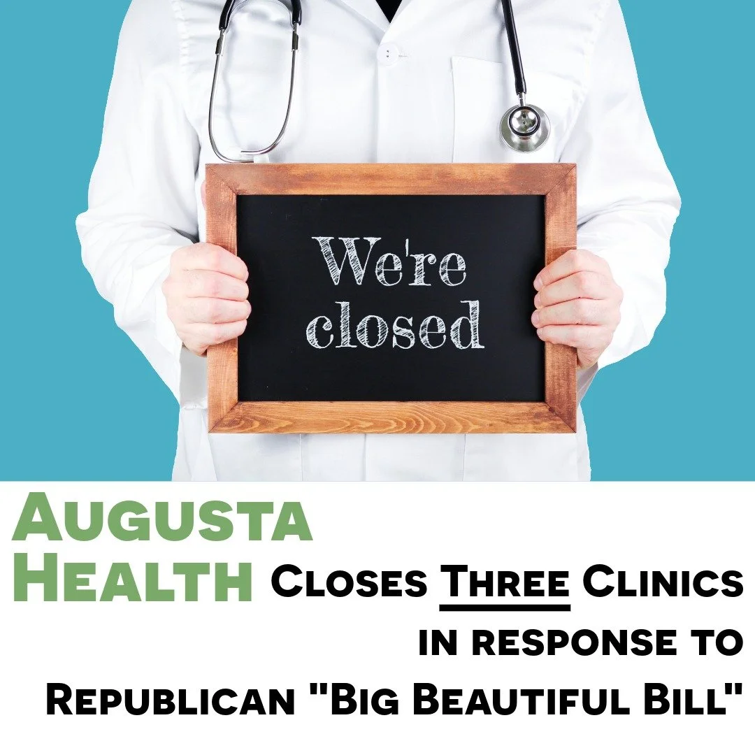The Republican “Big Beautiful Bill” will have punishing impacts on rural communities, in particular. Across Virginia, this will impact hundreds of thousands of our neighbors. Augusta Health in the Shenandoah Valley has already announced the closure of three clinics as a result of this bill. The Republican nominee for Governor claims that a rainy day fund can cover the coming federal Medicaid cuts, experts do NOT agree.