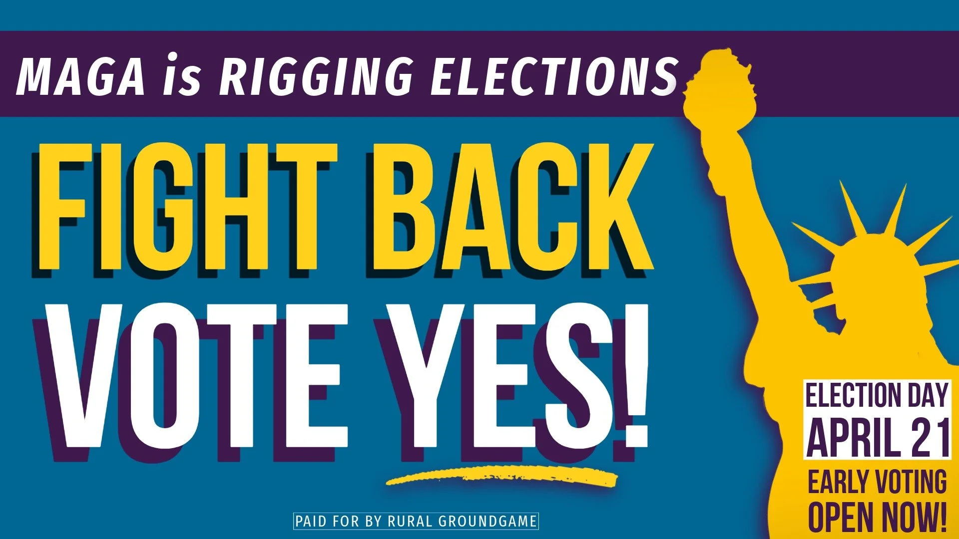 The 2026 congressional election may be the only meaningful check on the MAGA agenda. It’s time to fight for our neighbors and our country at every opportunity; it starts by Voting YES on or before April 21.